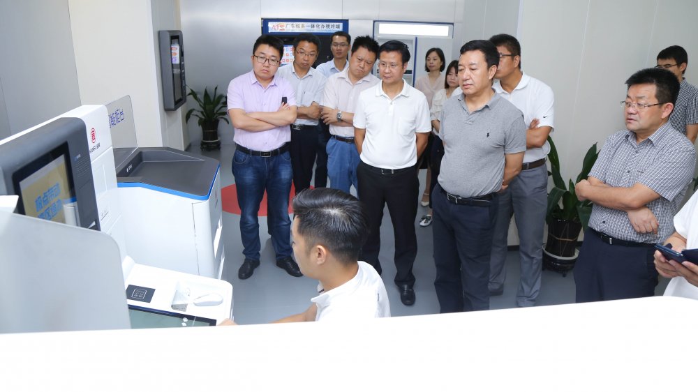 调研组一行还认真观看了公司自助终端、智能柜台以及大数据产品的演示,对金赋科技助力实现粤港澳大湾区税务及政务通办这一创举表示赞赏,并鼓励金赋科技继续研发创新,在改善民生、优化营商环境方面做出更大的贡献。