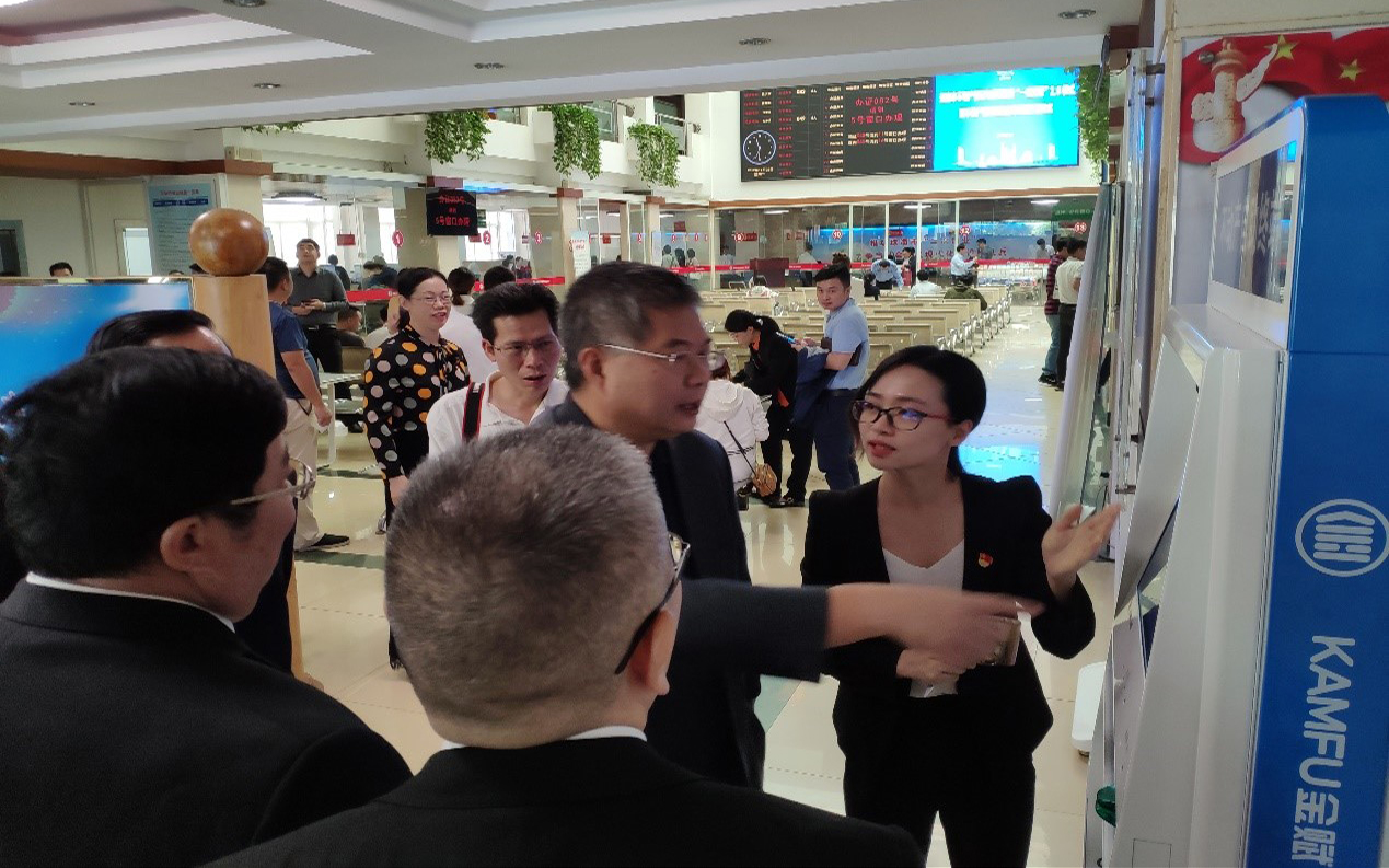 珠海市税务局局长曾天翔、珠海市政数局局长李喜妍参观自助税务终端