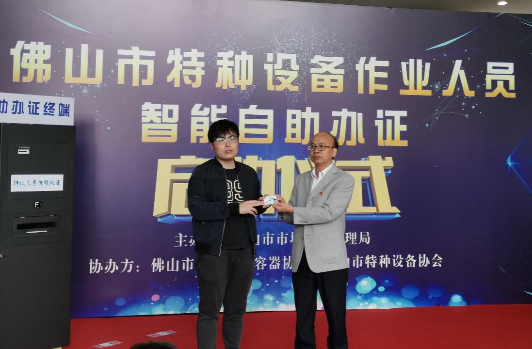 佛山市民领取全国首张特种设备安全管理和作业人员智能CPU卡-金赋助力佛山营商环境改革又一力作