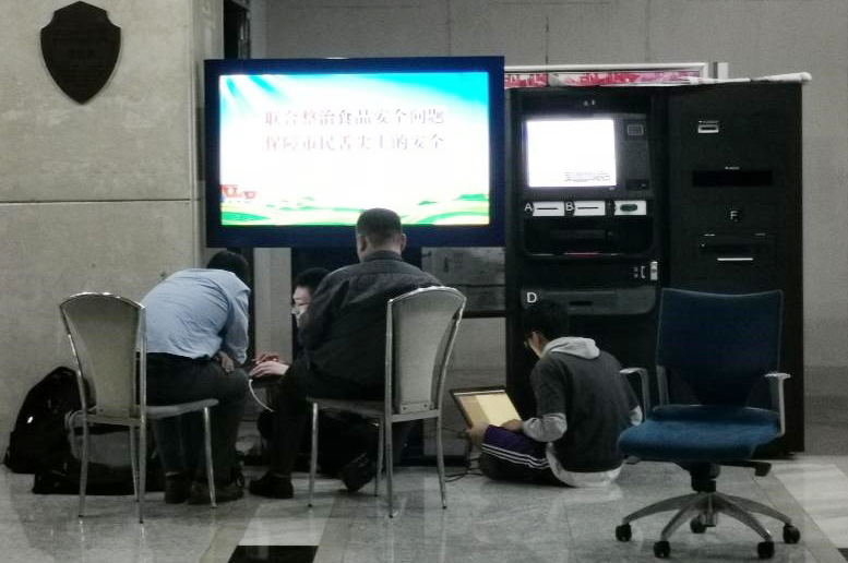 金赋工程师安装及调试市民之窗终端,为启动仪式做好准备