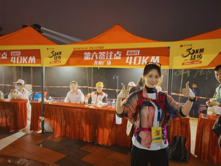 没想过放弃。一个人也可以走50km,但和一帮人走的感觉不一样。由于大家的体能不一样,导致进度可能有快有慢,我们还一路开玩笑说“走着走着就散了”,但其实心没有散,一起分享,一起鼓励,成为彼此坚持下去的最大动力。