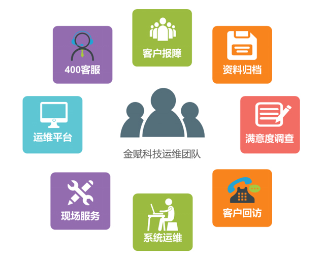 金赋科技运维团队以信息化、系统化手段管控整个运维服务过程,智能化管理运维信息档案库,实现运维服务的规范化、标准化、精细化,保证运维服务质量,力求带给用户最佳体验。